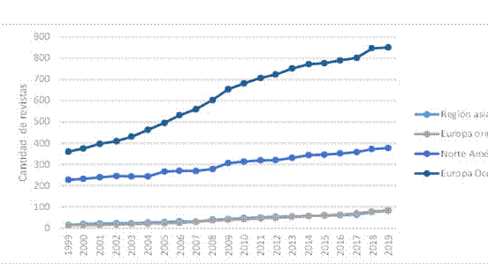 Figura 3. Cantidad de revistas científicas por región (1999-2019).