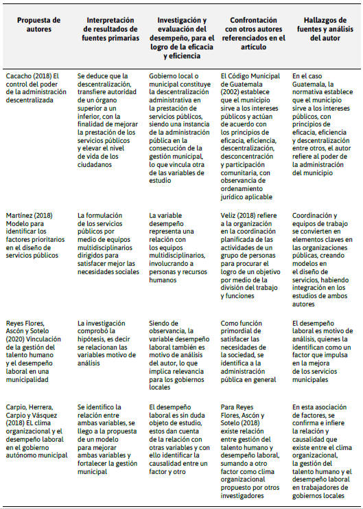 funciones. En la exploración de la eficacia y eficiencia administrativa se han llevado