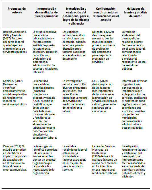 municipal por medio de identificar factores como el rendimiento laboral, la