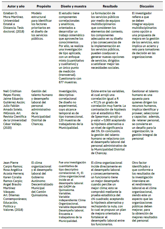 organizaciones públicas, comparar estudios relacionados a mejorar la gestión