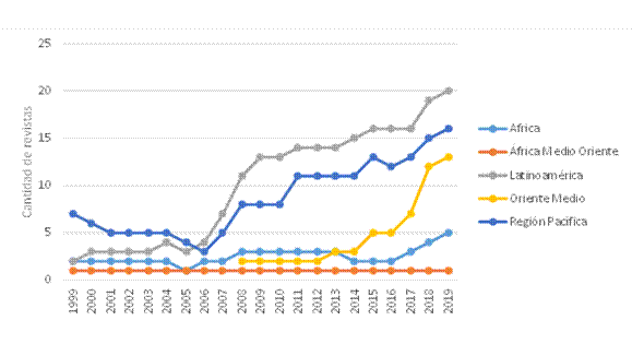 Figura 3. Cantidad de revistas científicas por región (1999-2019).