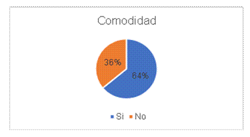 En el Gráfico 7, se muestra que, el mayor porcentaje de los clientes se siente que sus viajes son cómodos que es de 64%, para el 36% que es la minoría indica que no se siente cómodo a la hora de viajar.