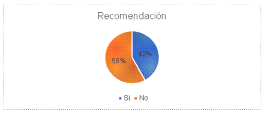 En el Gráfico 9, se puede apreciar que, el 58% de los clientes encuestados de la línea Sindical Trans Emperador, no recomendaría el servicio que brinda para la población en general mientras que el 42% de las personas encuestadas, indican que si lo haría siendo una minoría.