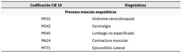 Tabla 4. Diagnósticos de procesos músculo-esqueléticos y respiratorios en el 2019.