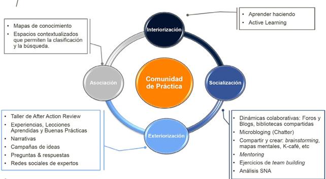 Un aspecto importante dentro del aprendizaje de las empresas es la determinación de las buenas prácticas, de ellas se pueden obtener enfoques innovadores que faciliten el quehacer diario en las organizaciones como lo son las formas de transformación del conocimiento como lo es lo tácito y lo explícito Nonaka y Takeuchi (1995), con lo tácito aprendo haciendo mediante la colaboración entre pares, mentoring, brainstorming, mindMapinng y ejercicios de team building, con relación a lo explícito se realizan buenas prácticas, boletines y similares, espacios contextualizados con herramientas de clasificación de búsquedas, entre otras.