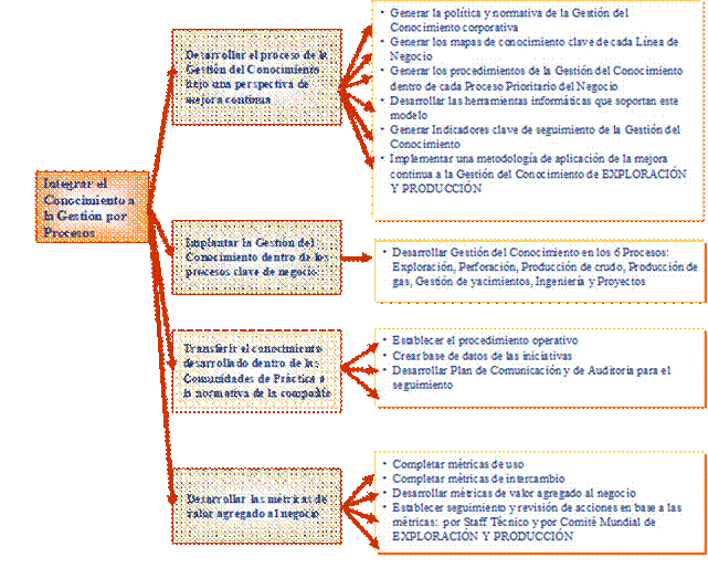 Integrar la gestión del conocimiento a la gestión por procesos para ello en la Figura 4 se muestra un análisis que busca favorecer una mejor comprensión dentro de cada proceso. (Mendoza, Rizo, y Avila, 2006).