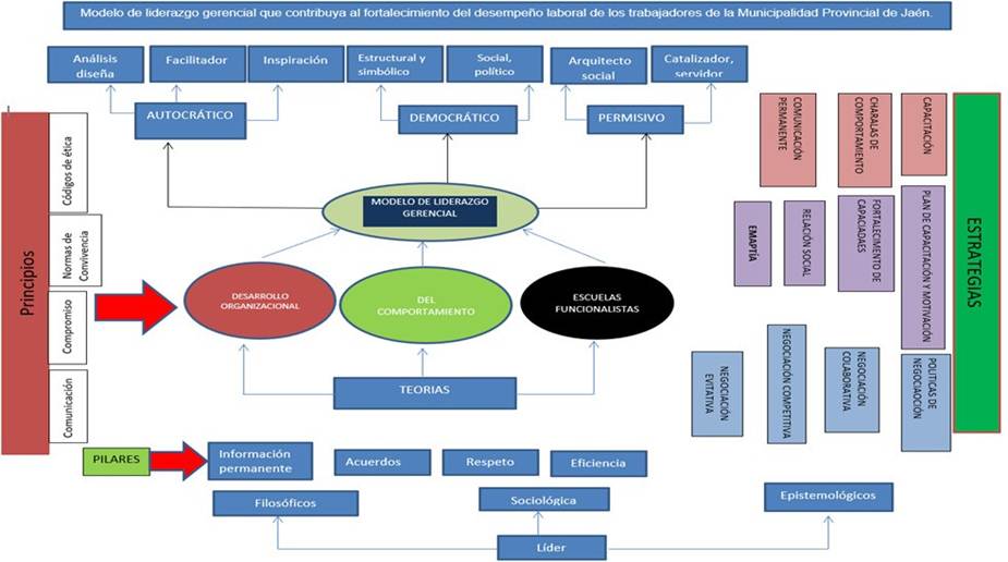 Figura 1. Diseño de un modelo de liderazgo gerencial que contribuya al fortalecimiento del desempeño laboral de los trabajadores de la Municipalidad Provincial de Jaén, 2021.