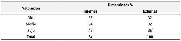 El resultado por las dimensiones de cada una de las variables, se determinó que existen diferencias en los niveles de valoración e indicando que la prioridad en el diseño del modelo de gestión es la dimensión interna. Así, el nivel de valoración de la dimensión interna, considerando los indicadores de conocimiento, habilidades, actitudes y motivaciones tiene nivel bajo (48%), alto (28%) y medio (24%); la dimensión externa, considera los indicadores clima laboral, perspectiva profesional, condiciones de trabajo, reconocimiento, planificación e integración, tienen un nivel bajo (36%), alto y medio tienen el (32%), respectivamente. Esto refleja la importancia de priorizar la mejora de las dimensiones e indicadores internos del personal y luego las dimensiones externas. En la Tabla 2, se detallan los hallazgos.
